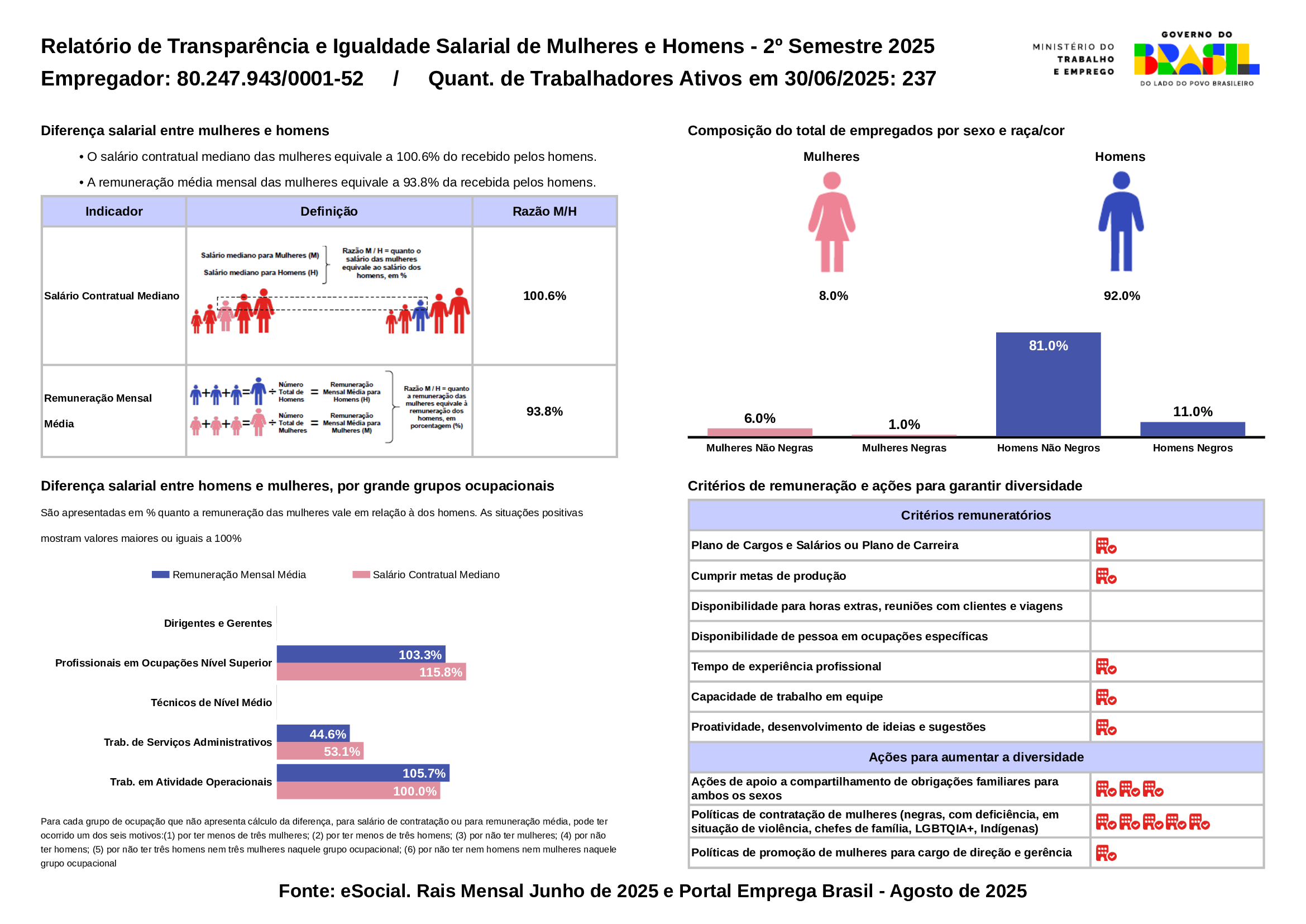 Abaixo, segue o "Relatório de Transparência e Igualdade Salarial de Mulheres e Homens" atualizado da Transportadora Primo, referente ao Segundo Semestre de 2025: